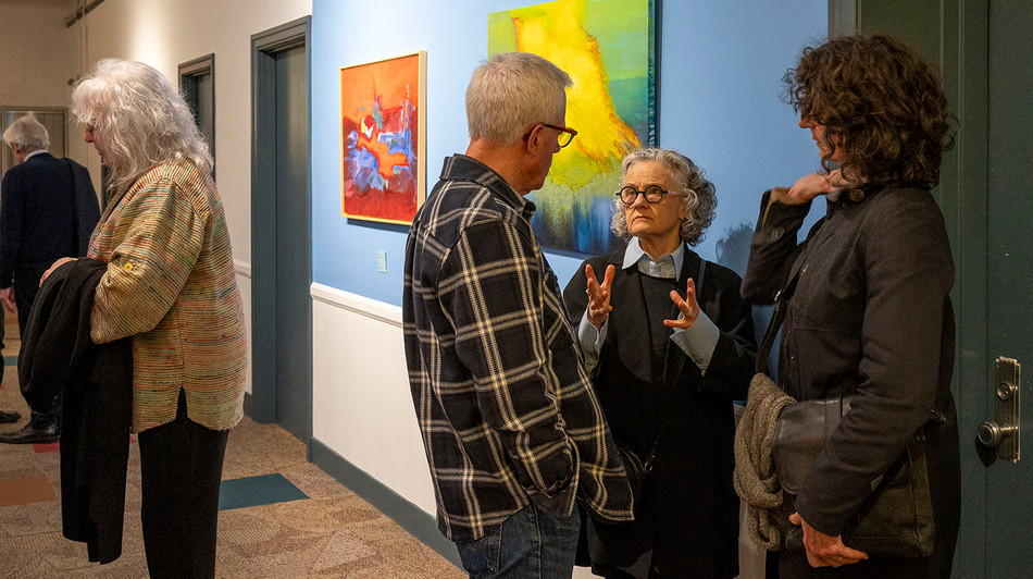 The opening attracted over 100 people from a cross-section of the community in Victoria and received television and press coverage. In his introduction, Franc D'Ambrosio, principal architect and founder of Dau Studio, described the purpose of this exhibition as a "vehicle to contribute to and help foster a sense of community among artists and creative people in our adopted City. By putting himself out there through his work, Schmitt is sharing his life-long passion and artistic production. His interest in, and love for, the phenomenon of colour, is his way to observe and celebrate through painting, where he has been, where he is, and what he observes. With this first solo exhibition in Canada, Schmitt is sharing his passion for his work and his belief in the life affirming power of art, as well as joining the conversation of the creative community of this City."
